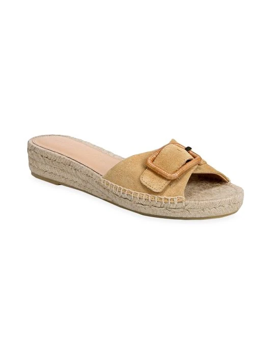 Anchored by a low espadrille wedge, Veronica Beard’s Apa sandals feature a suede vamp strap fastened with a wrapped buckle. This slip-on pair is enhanced with a casual round toe.