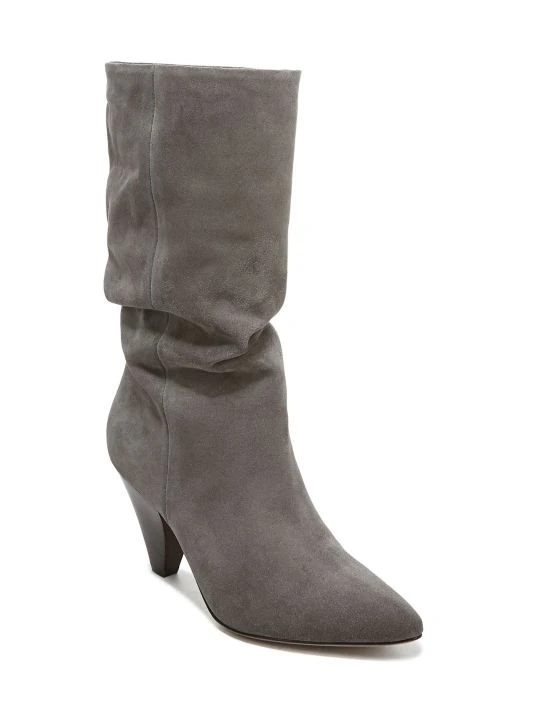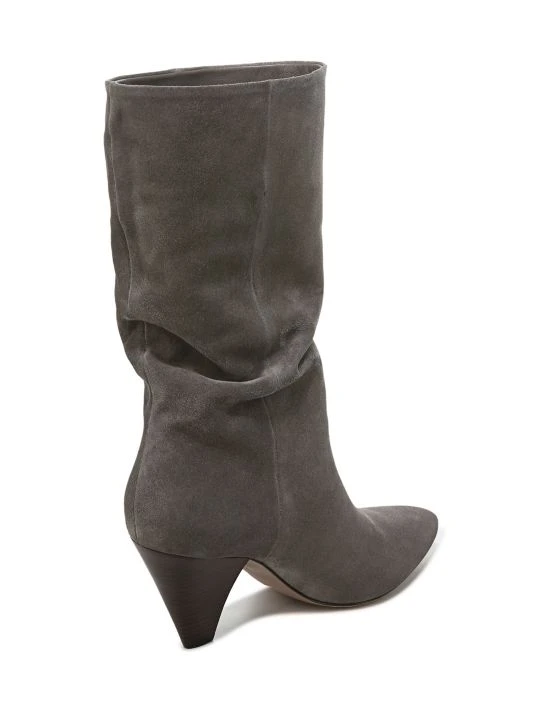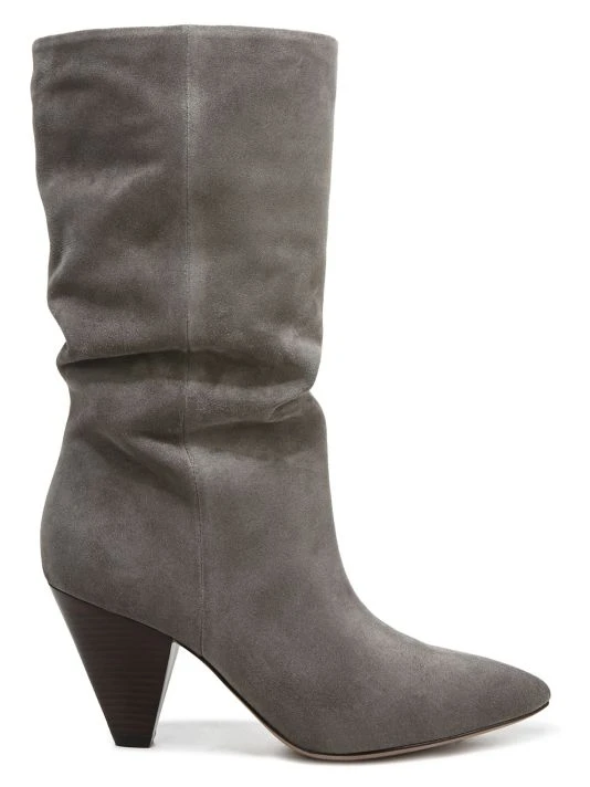 Veronica Beard’s Blondie boots are styled with a slouched shaft. Evoking western style, this suede pair is anchored by a stacked cone heel.