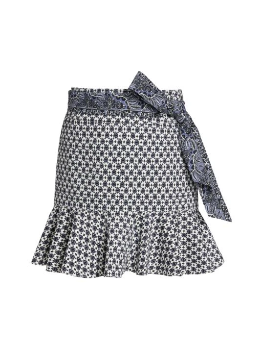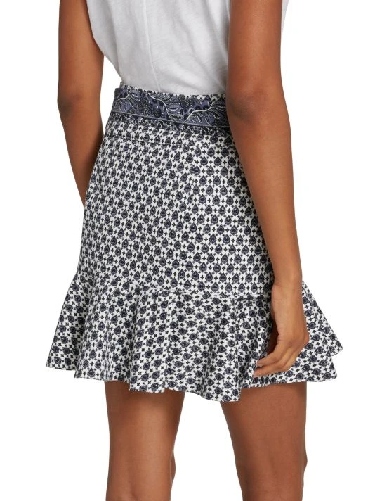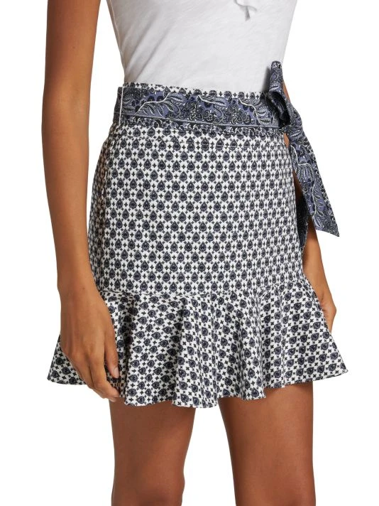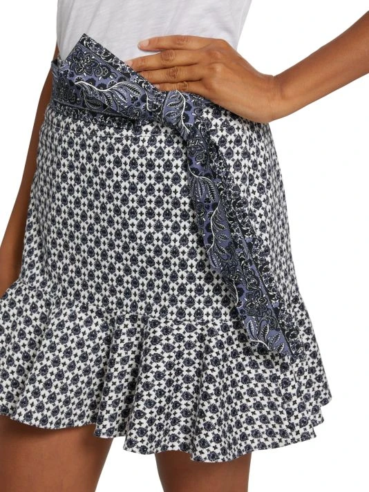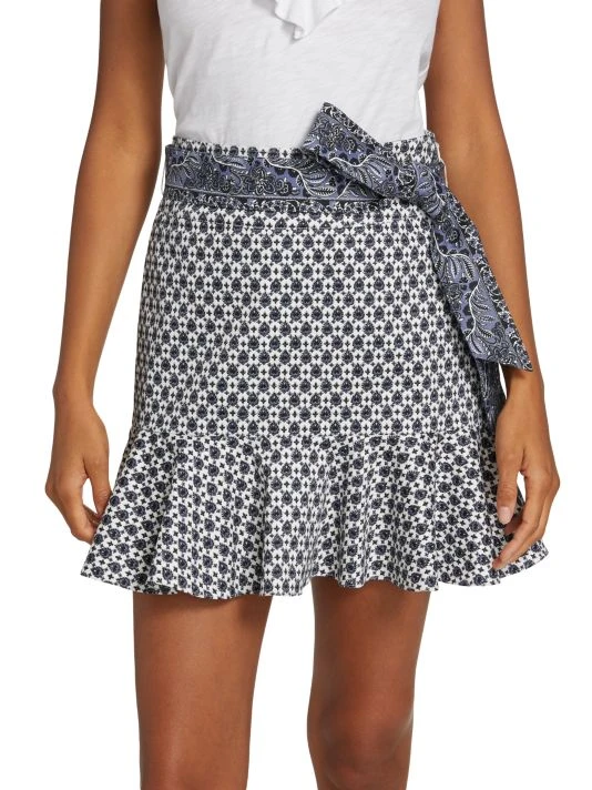 Crafted of printed stretch cotton, Veronica Beard’s Chesney miniskirt is styled with a self-tie sash belt and a flounce hem.