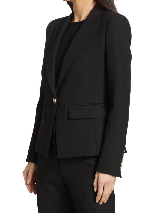 The Danielle dickey jacket by Veronica Beard is designed in a classic single-breasted style with buttoned cuffs.