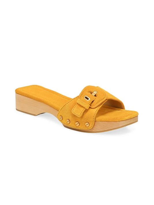 These leather clogs feature a buckle at the vamp, finished with goldtone studs.