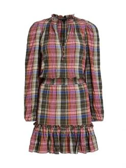 Crafted of plaid-printed cotton-blend, the Destiny minidress from Veronica Beard is designed with a flouncy tiered skirt.