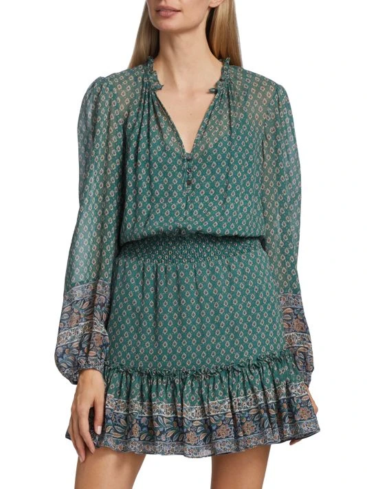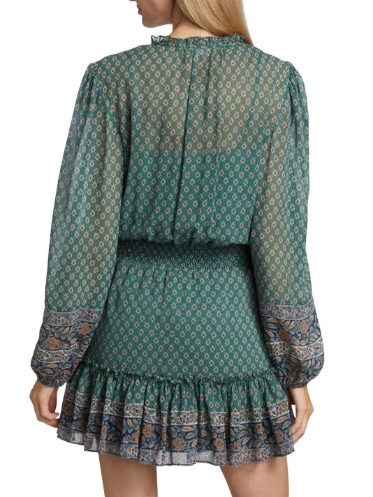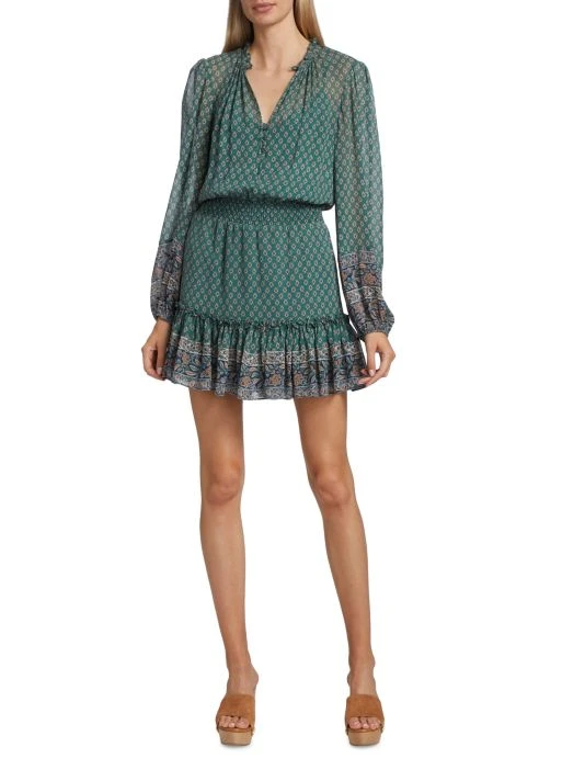 Crafted of flowing silk, the Destiny minidress by Veronica Beard is decorated with a mosaic paisley print.