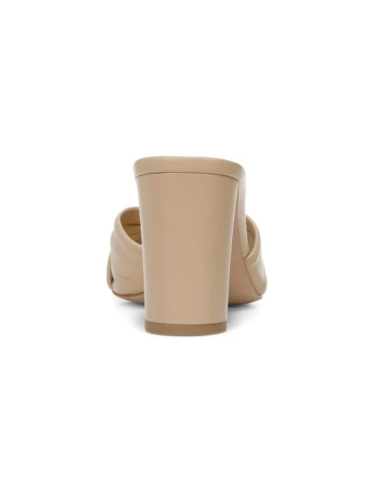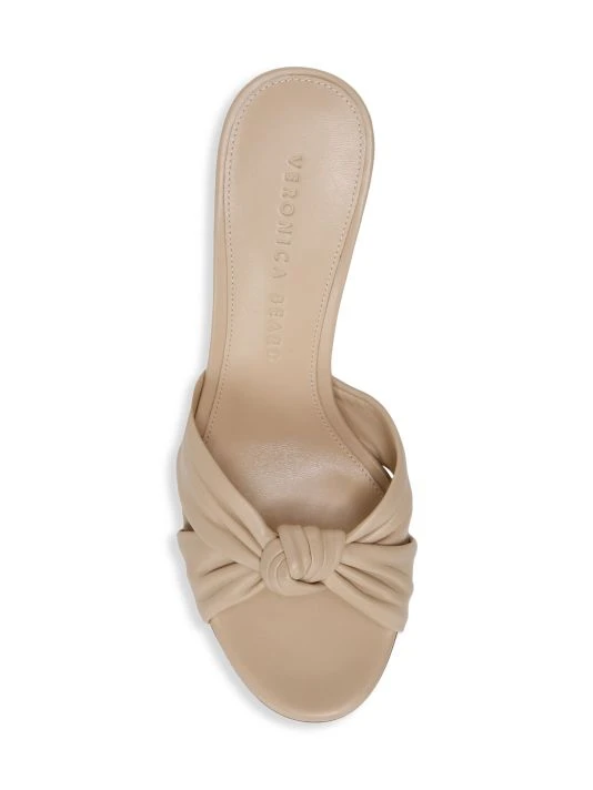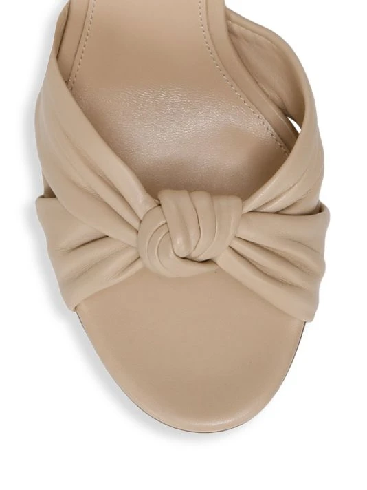 Crafted of smooth leather, the knotted vamp adds dimension to these sleek sandals.
