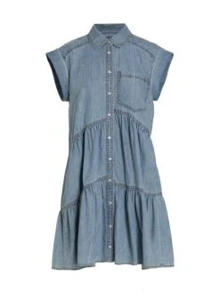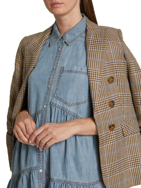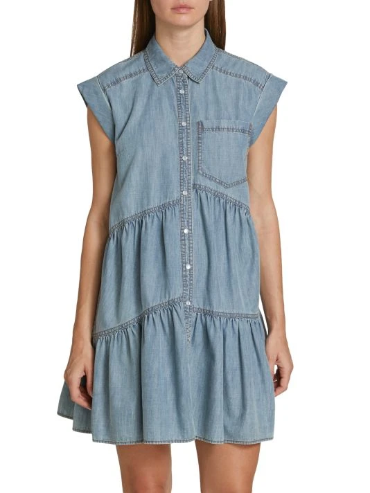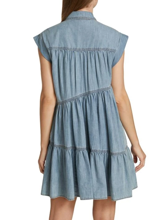 Veronica Beard’s Harrow dress is crafted from lightweight cotton chambray with a directional tiered silhouette.