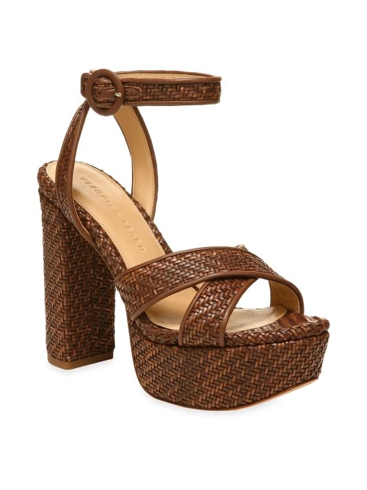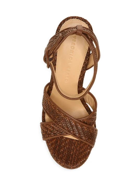 Topped with crisscrossed vamp straps, Veronica Beard’s Lalana sandals flaunt a woven construction fastened with a dainty ankle strap. This pair is anchored by a platformed block heel.