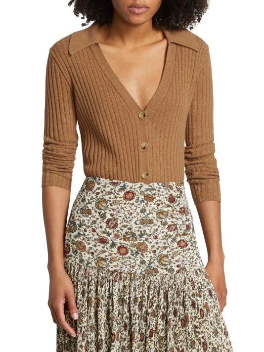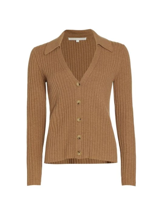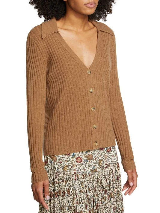 Allover ribbing shapes Veronica Beard’s collared Lazana cardigan, knit from soft cashmere.