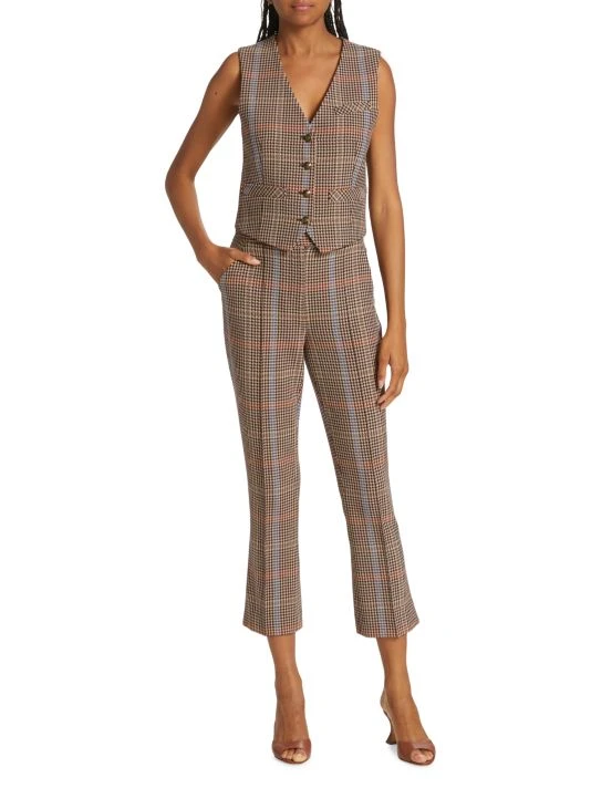 Designed with a cropped kick-flare silhouette, Veronica Beard’s Montlake pants feature classic houndstooth patterning.
