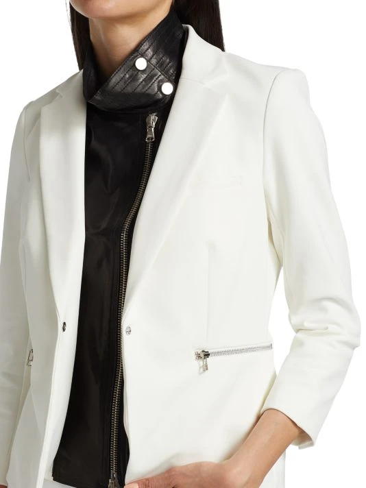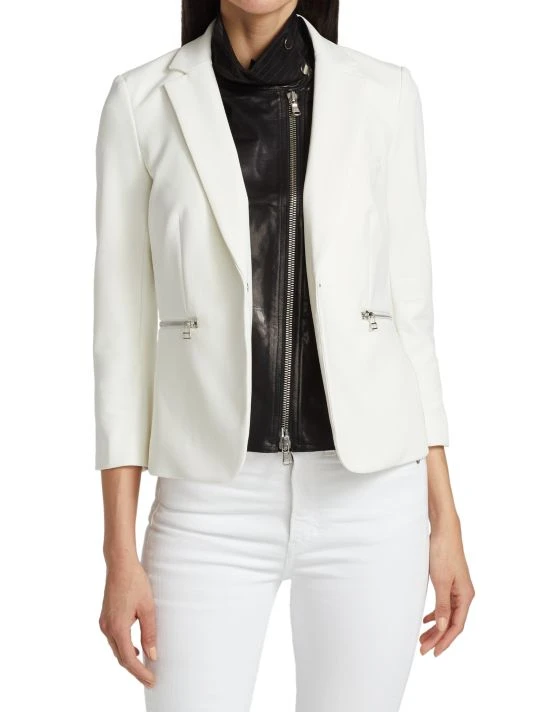 Crafted of luxurious leather, this moto-style topper is the perfect way to layer without adding bulk.