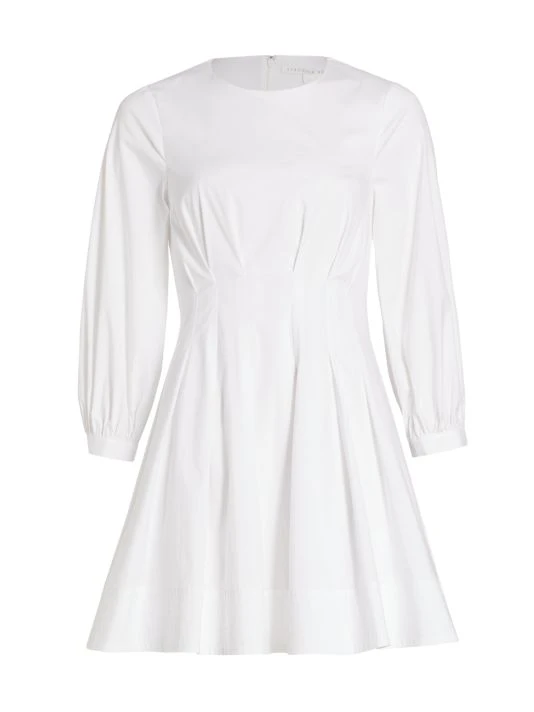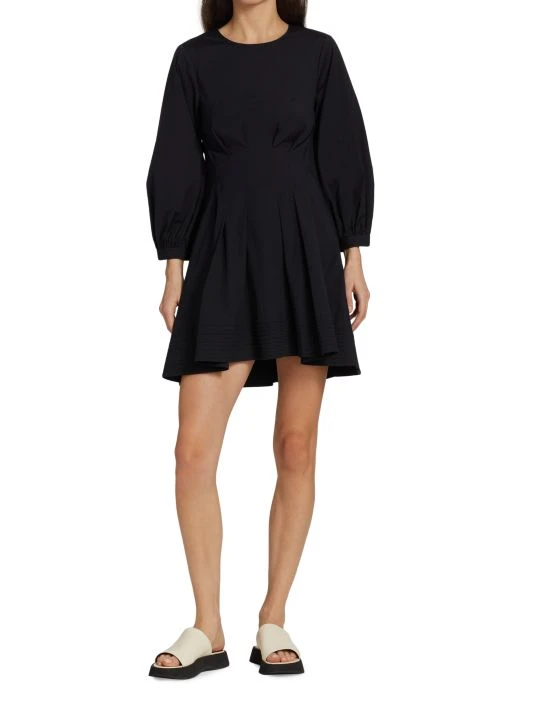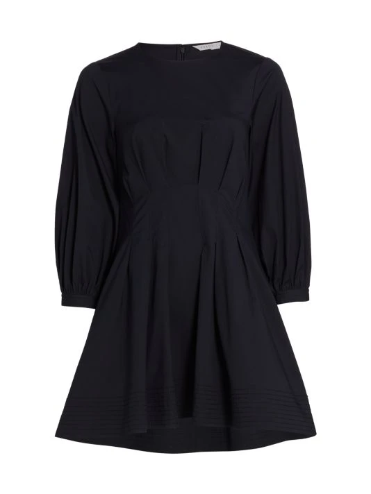 This minidress is crafted of stretch-cotton with puff-sleeves and a pleated skirt.