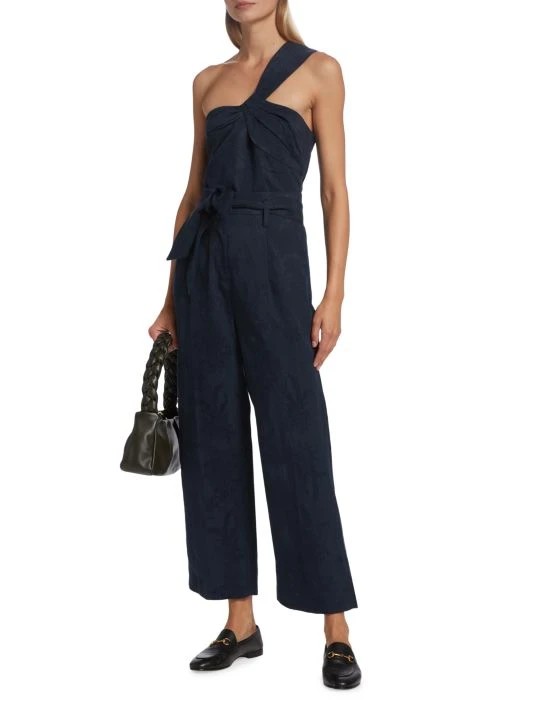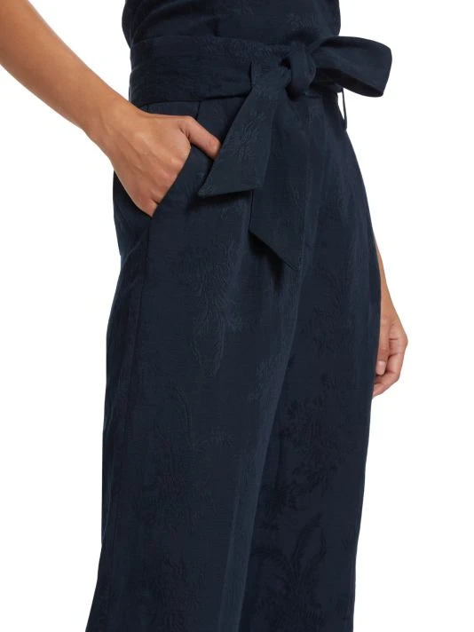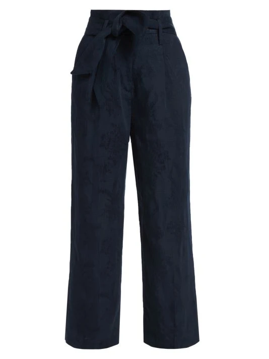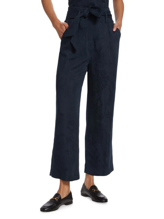 Veronica Beard’s Vitha pants boast a fitted high-waist, adorned with a self-tie belt. Crafted of a linen blend, this style features a subtle stitch pattern.