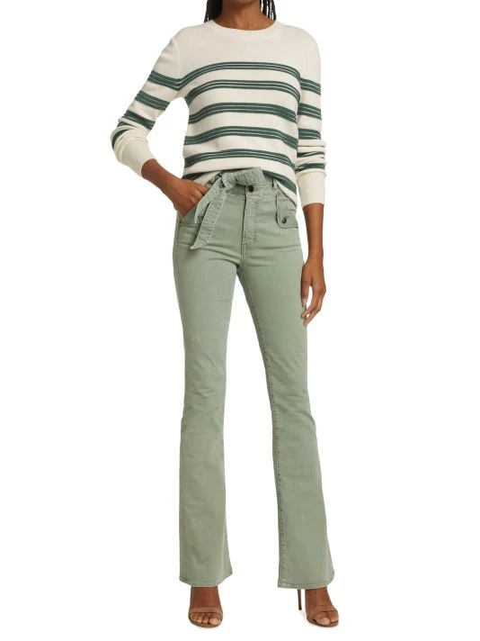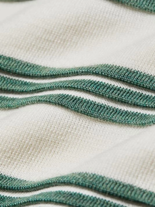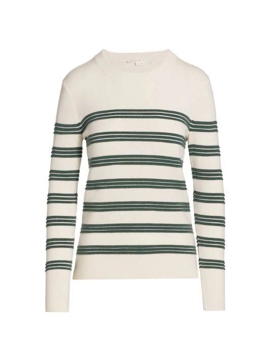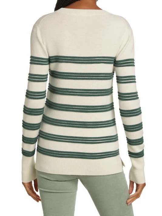 Textural graphic stripes cover the sleeves and bodice of this soft merino wool sweater.